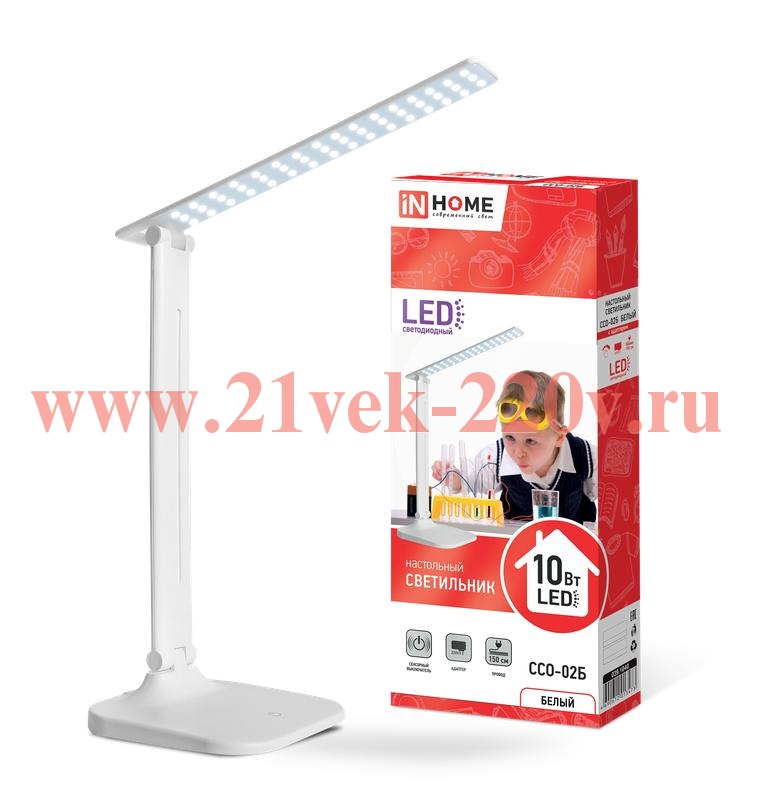 Светильник настольный светодиодный ССО 02Б 10Вт 4000К 625лм сенсор-диммер адаптер бел. IN HOME