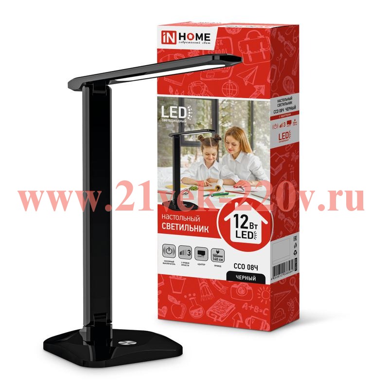 Светильник настольный светодиодный ССО 08Ч 12Вт 3000-6500К 600лм сенсор-диммер с адаптером черн.