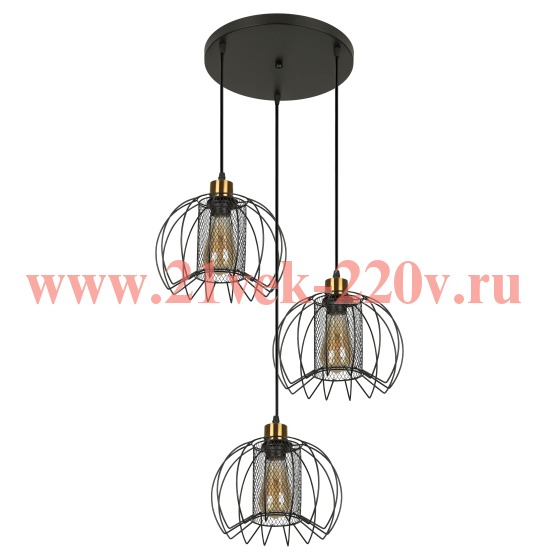 Серия металлических подвесов в цвете чёрный + латунь с оригинальными плафонами-сетками — стильный акцент для лофтовых и современных интерьеров. Модели на 1 и 3 лампы с цоколем E27 (макс. мощность — 60 Вт, лампы не входят в комплект). Регулируемая высота подвеса обеспечивает удобную установку под любые параметры помещения.