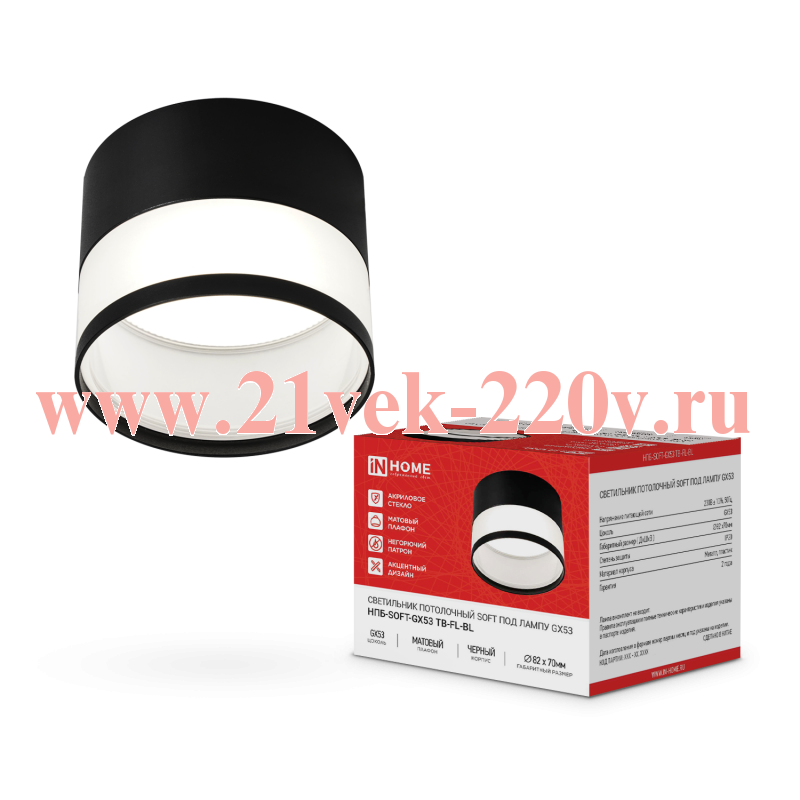 Светильник потолочный НПБ-SOFT-GX53 TB-FL-BL под GX53 матовый плафон 82х70мм черн. IN HOME