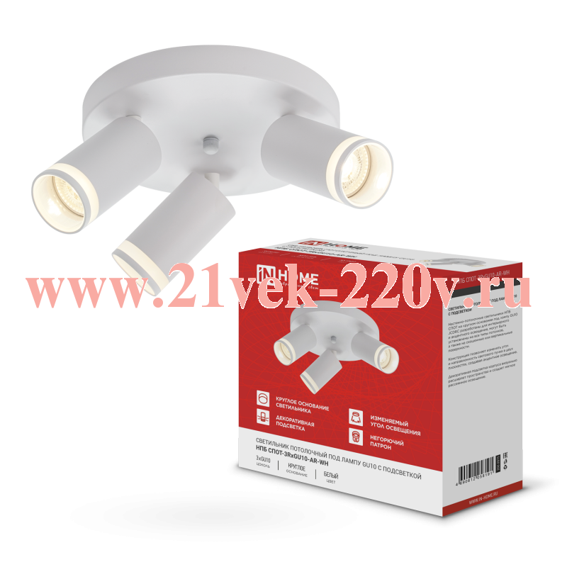 Светильник потолочный НПБ СПОТ-3RxGU10-AR-WH под GU10 с круглой базой бел. IN HOME