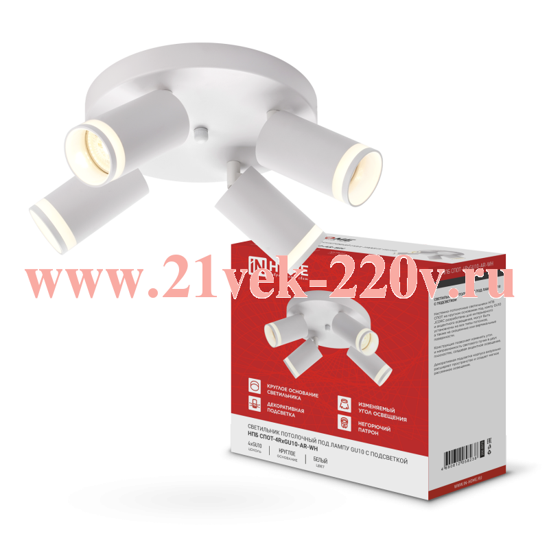 Светильник потолочный НПБ СПОТ-4RxGU10-AR-WH под GU10 с круглой базой бел. IN HOME
