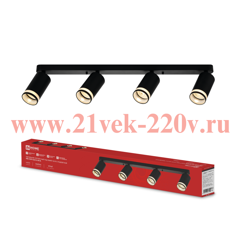 Светильник потолочный НПБ СПОТ-4xGU10-AR-BL под GU10 500х55х135мм линейный черн. IN HOME