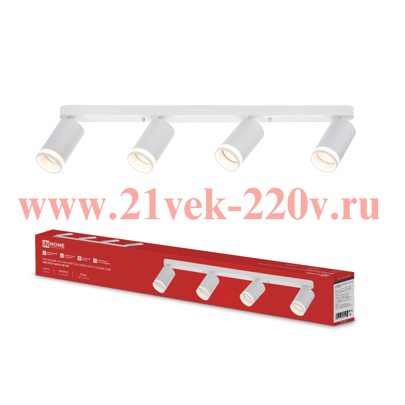 Светильник потолочный НПБ СПОТ-4xGU10-AR-WH под GU10 500х55х135мм линейный бел. IN HOME