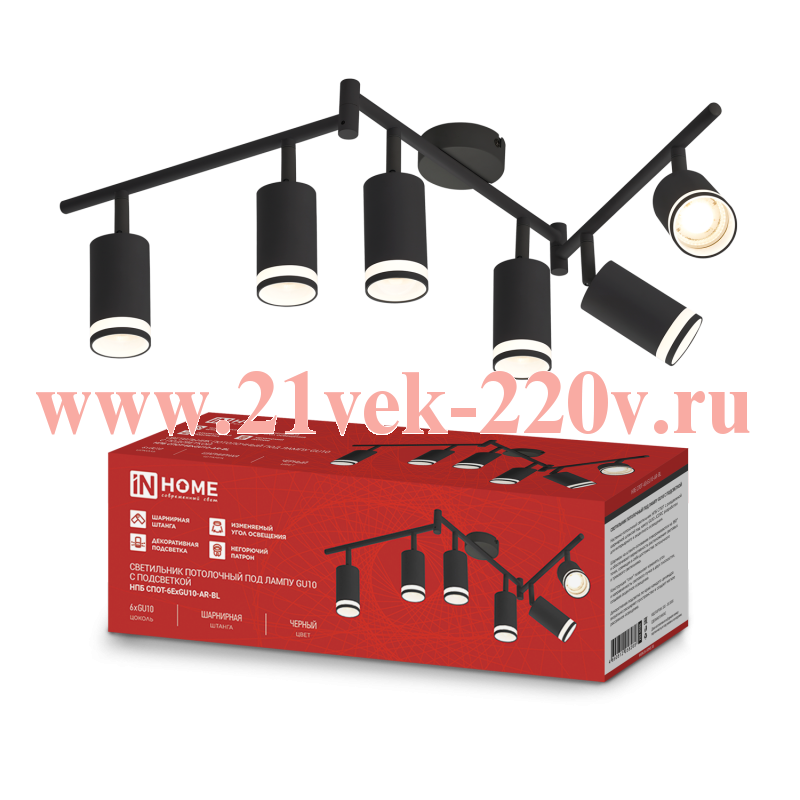 Светильник потолочный НПБ СПОТ-6ExGU10-AR-BL под GU10 с регулир. базой черн. IN HOME