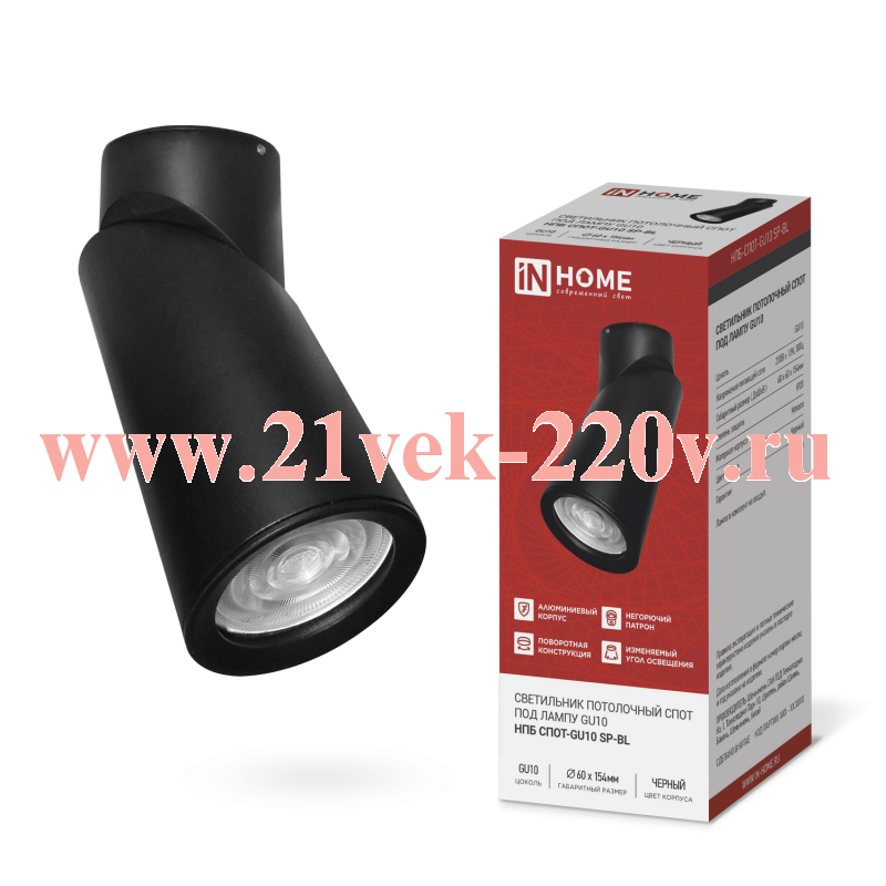 Светильник потолочный НПБ-СПОТ-GU10 SP-BL 60х154мм черн. IN HOME