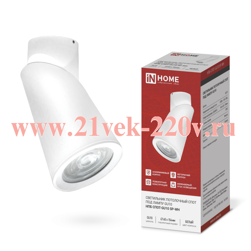 Светильник потолочный НПБ-СПОТ-GU10 SP-WH 60х154мм бел. IN HOME