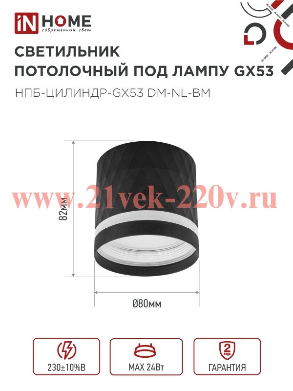 Светильник потолочный НПБ-ЦИЛИНДР-Gх53 DM-NL-BL с подсветкой 82х80мм черн. IN HOME