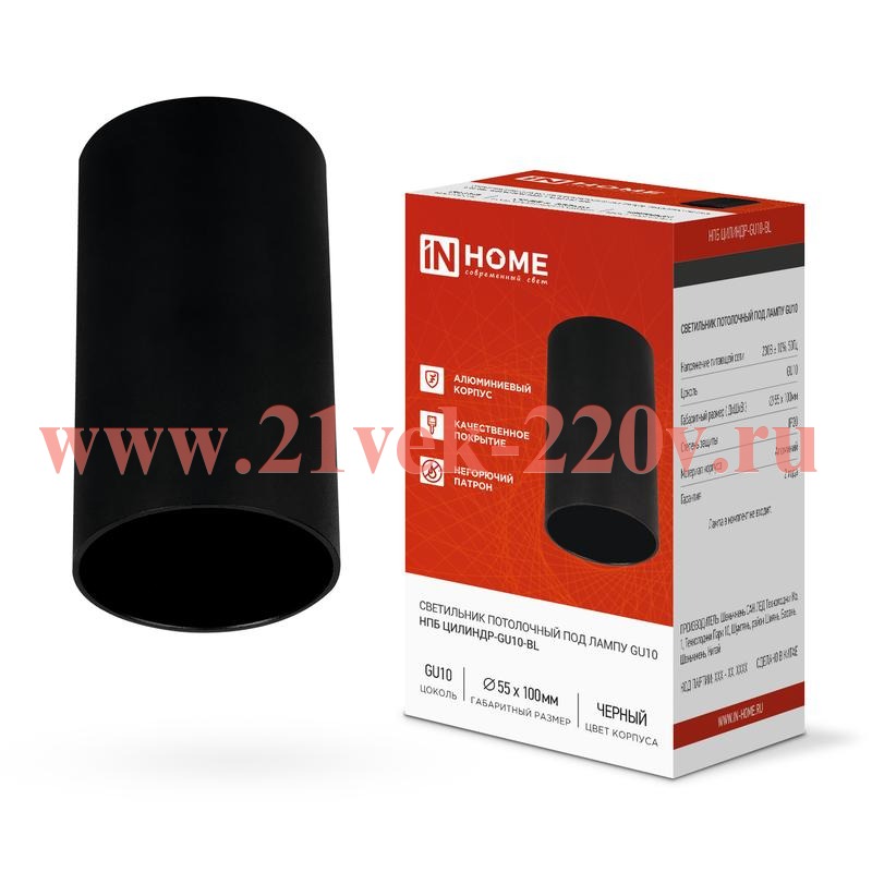 Светильник потолочный НПБ ЦИЛИНДР-GU10-BL под лампу GU10 55х100мм черн. IN HOME
