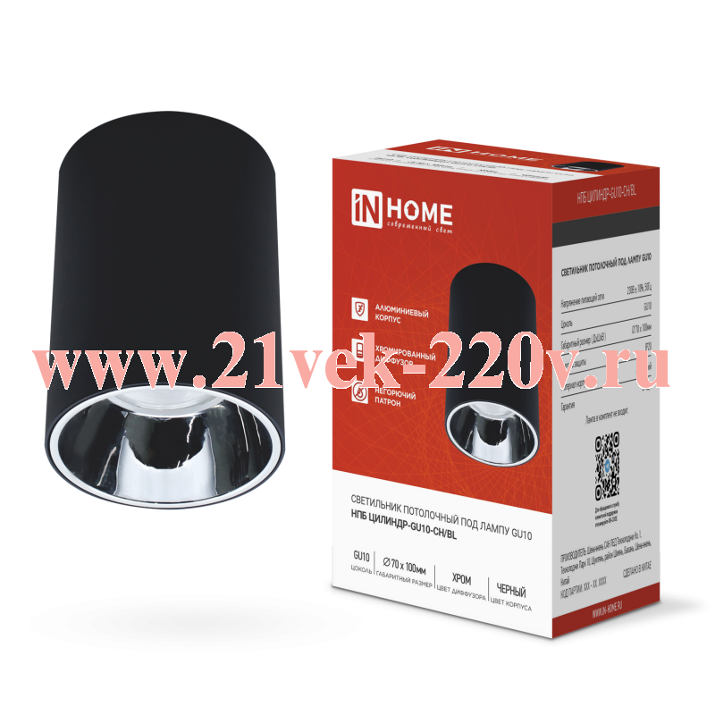 Светильник потолочный НПБ ЦИЛИНДР-GU10-CH/BL под лампу GU10 70х100мм черн. IN HOME