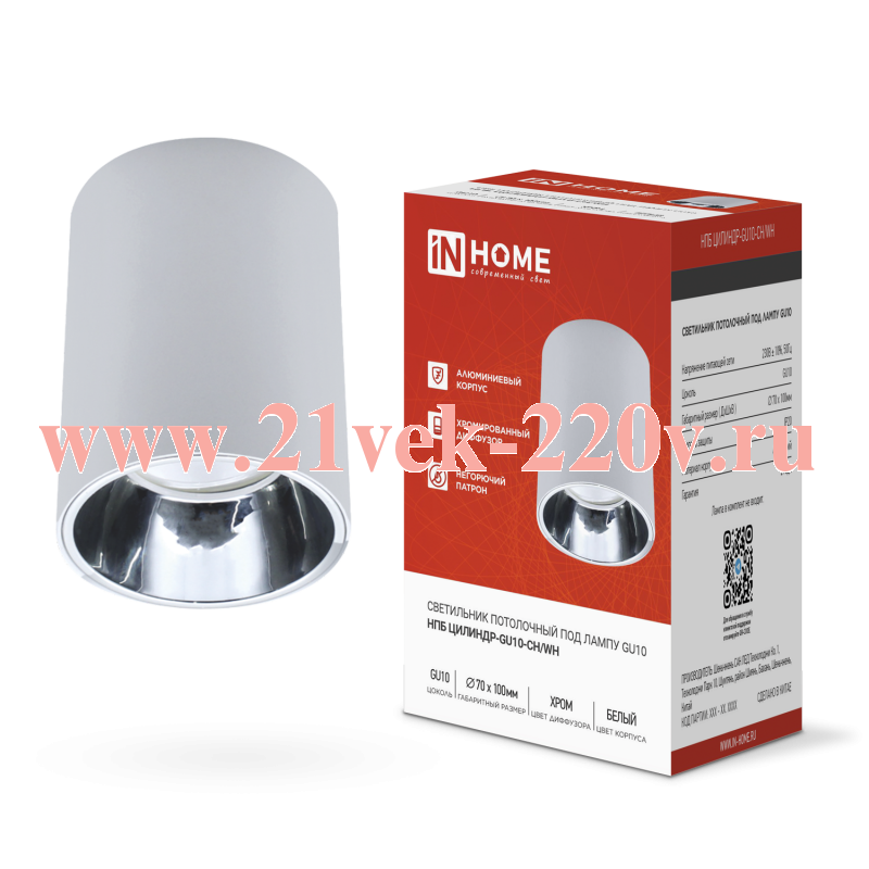 Светильник потолочный НПБ ЦИЛИНДР-GU10-CH/WH под лампу GU10 70х100мм бел. IN HOME