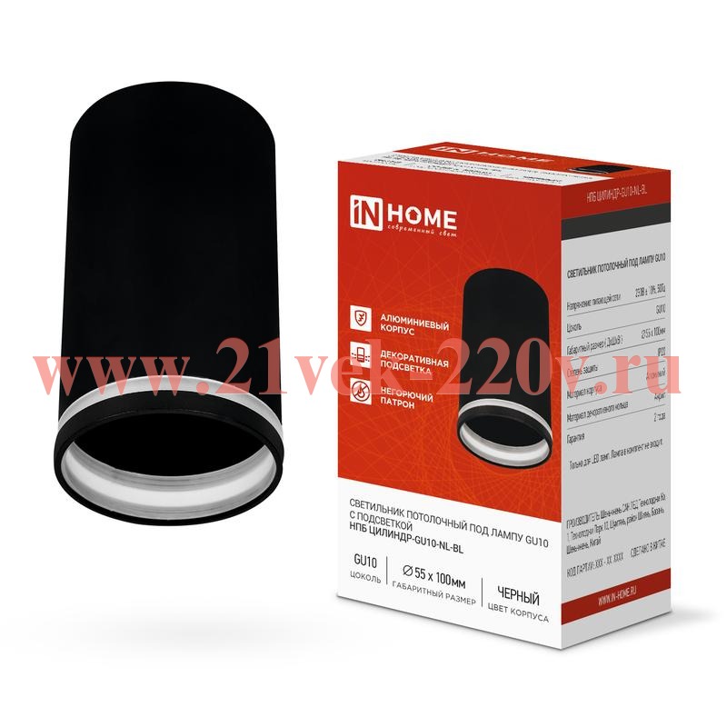 Светильник потолочный НПБ ЦИЛИНДР-GU10-NL-BL под лампу GU10 55х100мм черн. IN HOME