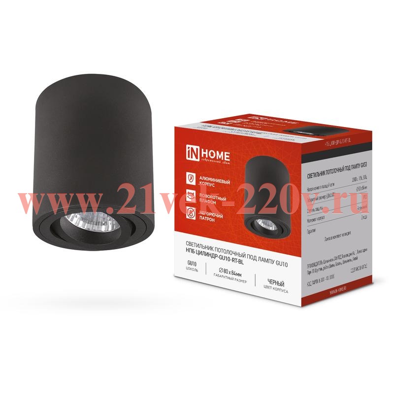 Светильник потолочный НПБ ЦИЛИНДР-GU10-RT-BL поворотный под лампу GU10 80х84мм черн. IN HOME