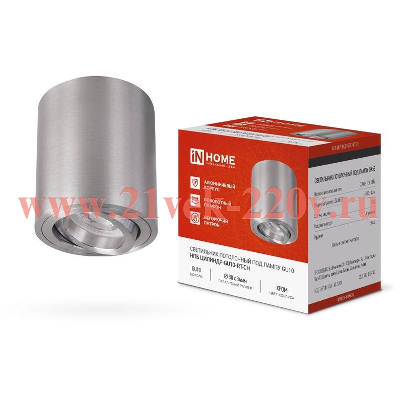 Светильник потолочный НПБ ЦИЛИНДР-GU10-RT-CH поворотный под лампу GU10 80х84мм хром IN HOME