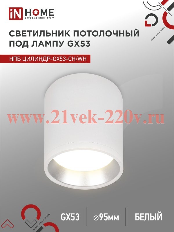 Светильник потолочный НПБ ЦИЛИНДР GX53-CH/WH под лампу GX53 95х80мм бел./хром IN HOME