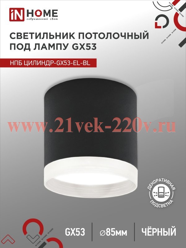 Светильник потолочный НПБ ЦИЛИНДР-GX53-EL-BL под лампу GX53 85х70мм черн. IN HOME