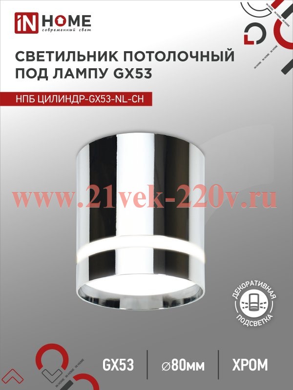 Светильник потолочный НПБ ЦИЛИНДР-GX53-NL-CH под лампу GX53 82х80мм хром IN HOME