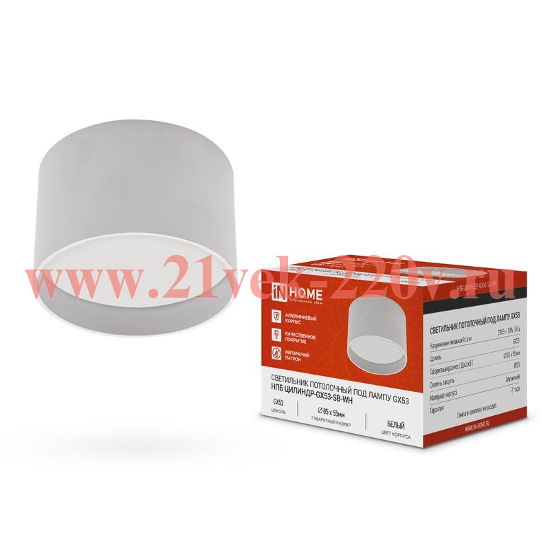 Светильник потолочный НПБ ЦИЛИНДР-GX53-SB-WH под лампу GX53 85х55мм бел. IN HOME