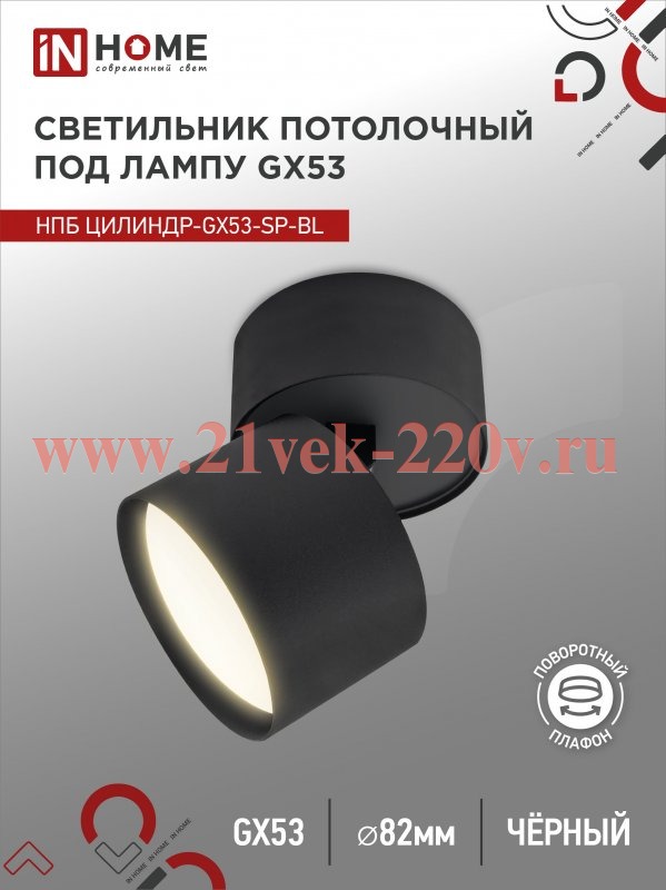 Светильник потолочный НПБ ЦИЛИНДР-GX53-SP-BL под лампу GX53 82х80мм черн. IN HOME