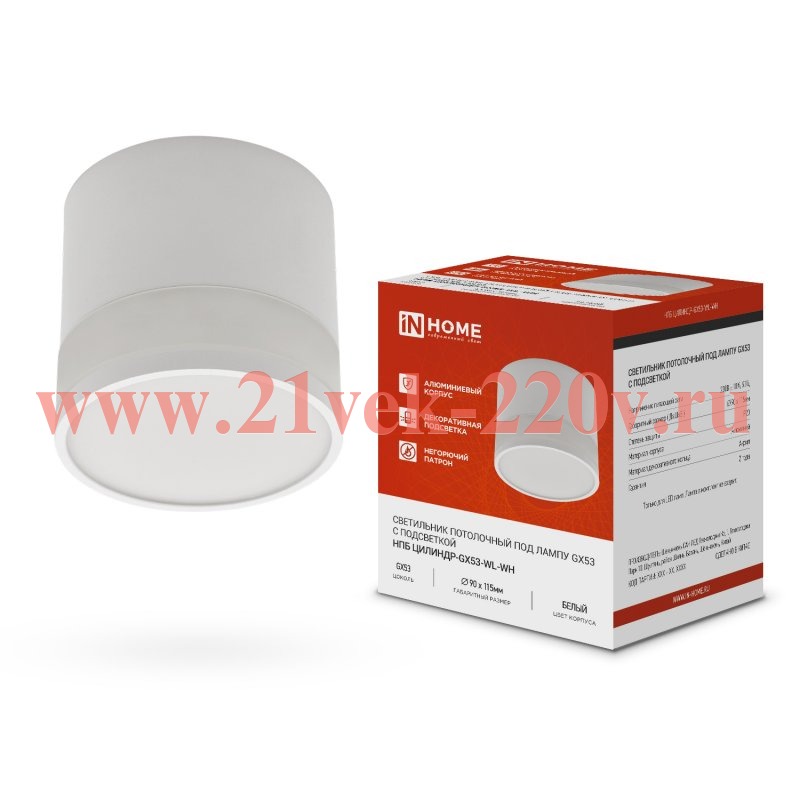 Светильник потолочный НПБ ЦИЛИНДР-GX53-WL-WH под лампу GX53 90х115мм бел. IN HOME