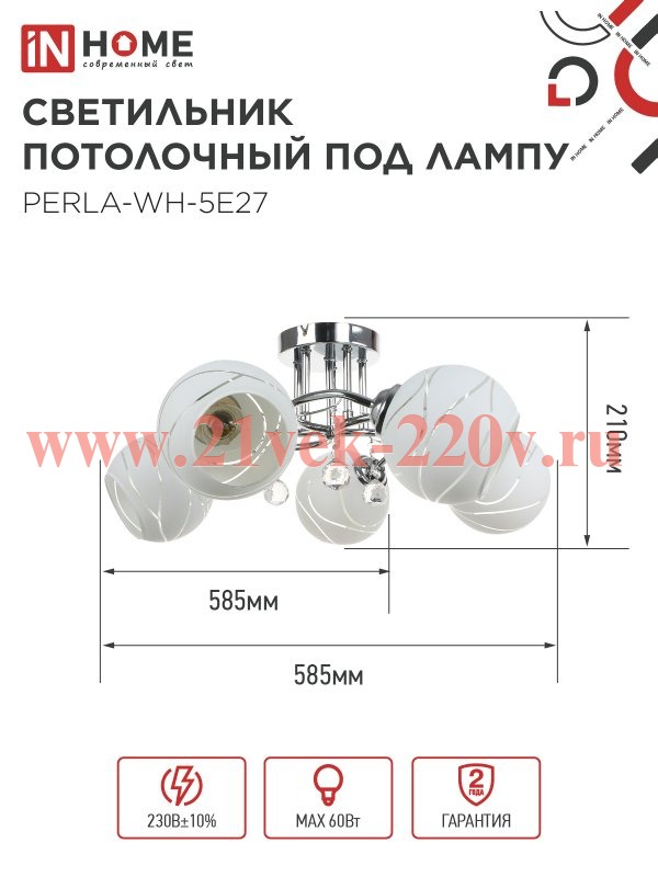 Светильник потолочный под лампу AURA PERLA-WH-5E27 585х585х250 хром IN HOME