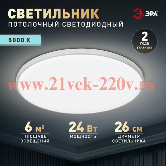 Светильник потолочный светодиодный ЭРА Классик без ДУ SPB-6 Slim Base WH 24W-5K 5000K