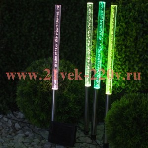 Садово-парковый светодиодный светильник ERASF024-22 "Пузырьки" станет необычным источником света для Вашего сада. В комплект входит 4 светильника, соединенных между собой.Оптимальная длина позволит Вам разместить конструкцию в палисаднике, украсить декоративный пруд или бассейн, необычно подсветить тропинку или придомовую территорию. Фигурки из ударопрочного пластика высотой 53 см с легкостью втыкаются в землю.Беспроводной LED светильник работает от солнечной батареи. Данный вид получения энергии является наиболее экологичным, энергоемким, а также бесшумным. Питание происходит во включенном режиме "ON", днем. Самое интересное начинается с наступлением темноты. Пузырьки начинают медленно переливаться желтым, зеленым, фиолетовым, розовым и оранжевым цветами. Такое световое шоу будет лучше всего смотреться в особо затемненных местах. Эффект пузырьков придает светильнику динамики, привлекает внимание.Работа от солнечной батареи рассчитана 8 часов непрерывной работы. Высокий показатель пыле и влагозащиты позволяет оставлять светильник на улице в непогоду. Обращаем Ваше внимание, что перед использованием фигурки её необходимо включить и зарядить. Светильник заряжается в течение всего светового дня.Уличный светодиодный светильник от бренда ЭРА лучший вариант для украшения Вашего сада.