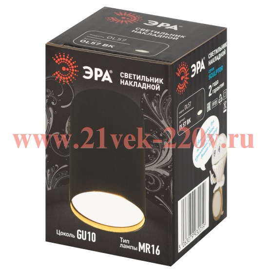 Светильник SCULPTOR OL57 BK MR16 GU10 IP20 настен./потолочн. спот черн. Эра