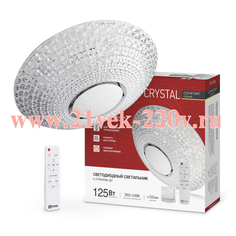 Светильник светодиодный COMFORT CRYSTAL 125Вт 3000-6500К 10000лм 230В 500х115мм с пультом ДУ IN HOME