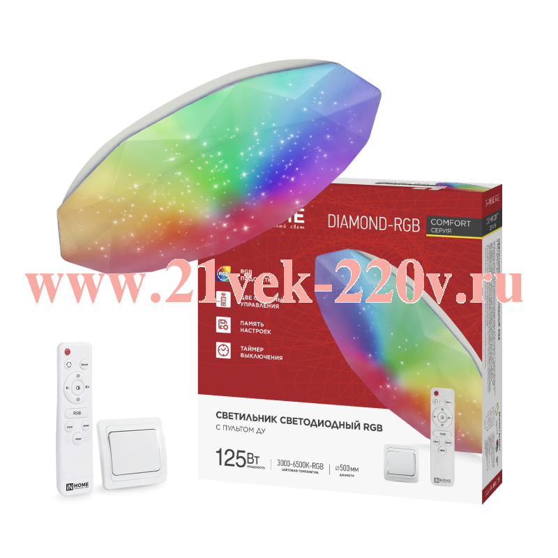 Светильник светодиодный COMFORT DIAMOND-RGB 125Вт 3000-6500К 10000лм 230В 500х105мм с пультом ДУ IN НОМЕ
