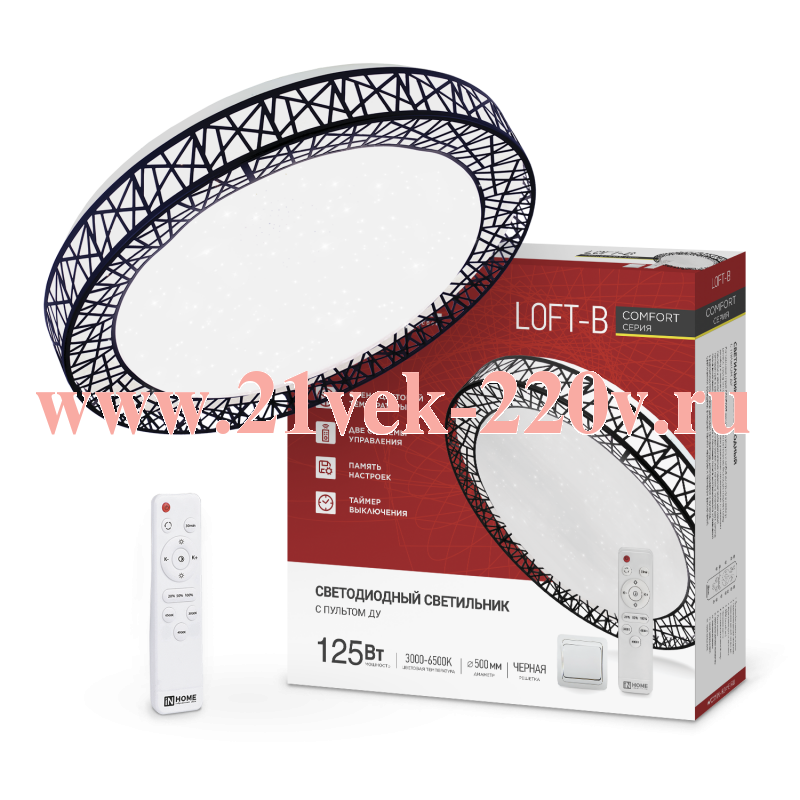 Светильник светодиодный COMFORT LOFT-B 125Вт 3000-6500К 10000лм 230В 500х105мм с пультом ДУ IN HOME