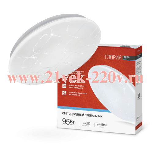 Светильник светодиодный DECO ГЛОРИЯ 95Вт 230В 6500К 10000лм 483х67мм IN HOME