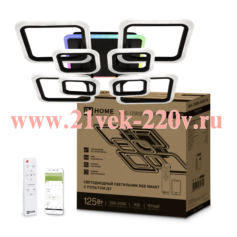 Светильник светодиодный ELEGANT ARIS-125RGB-SMART-BL 125Вт 230В 3000-6500К 8800лм 585х585х115мм пульт ДУ чёрный