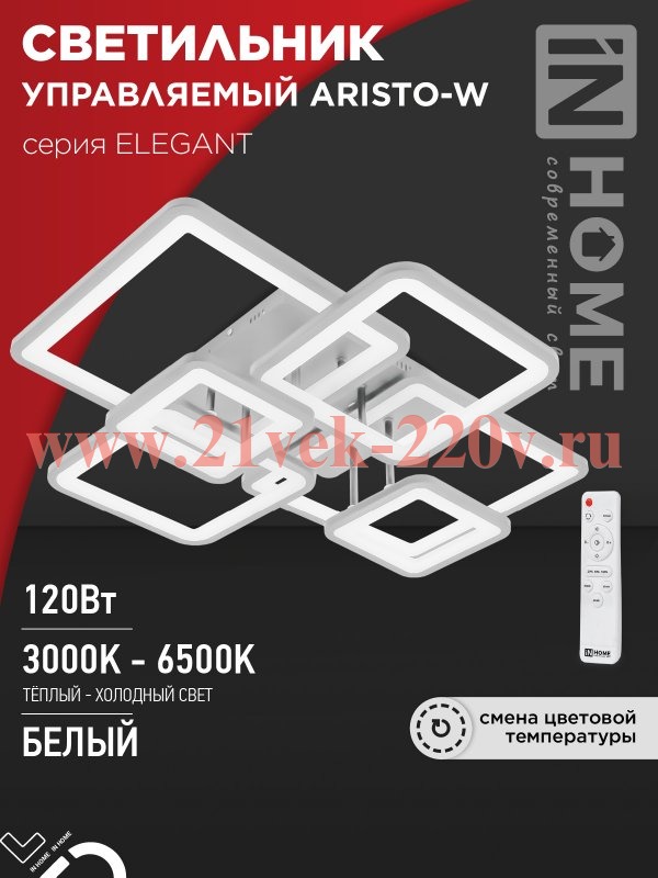 Светильник светодиодный ELEGANT ARISTO-W 120Вт 230В 3000-6500К 8400лм 686х587х151мм пульт ДУ бел. IN НОМЕ