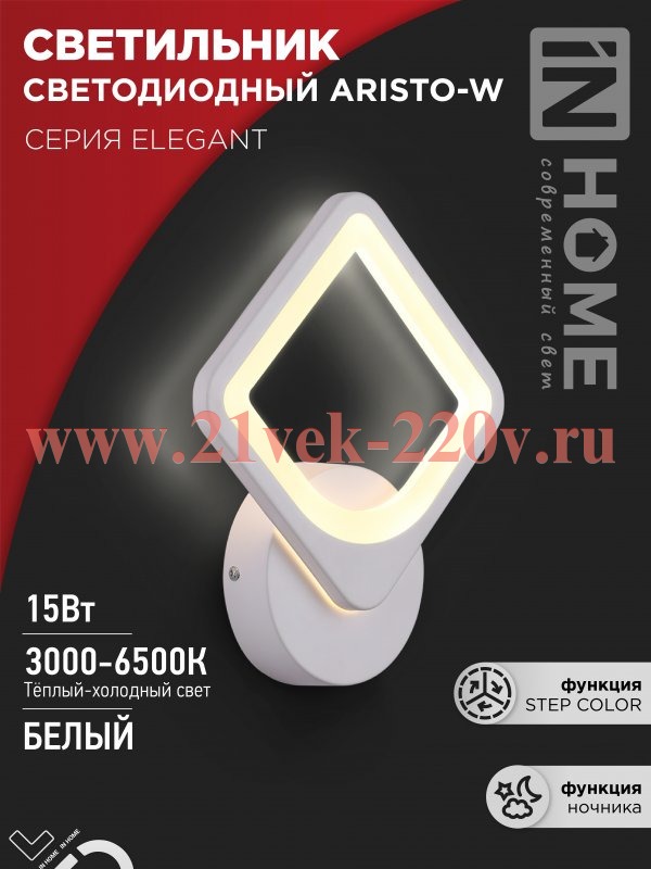Светильник светодиодный ELEGANT ARISTO-W 15Вт 230В 3000-6500К 1050лм STEP COLOR бел. IN HOME