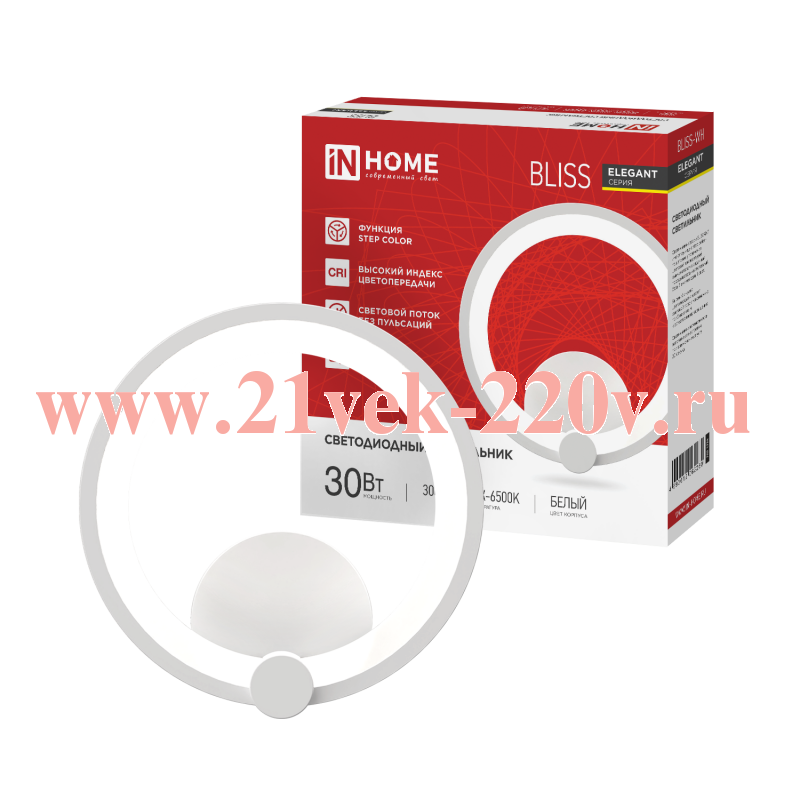 Светильник светодиодный ELEGANT BLISS-WH 30Вт 3000-6500К 2400лм 230В STEP COLOR бел. IN HOME