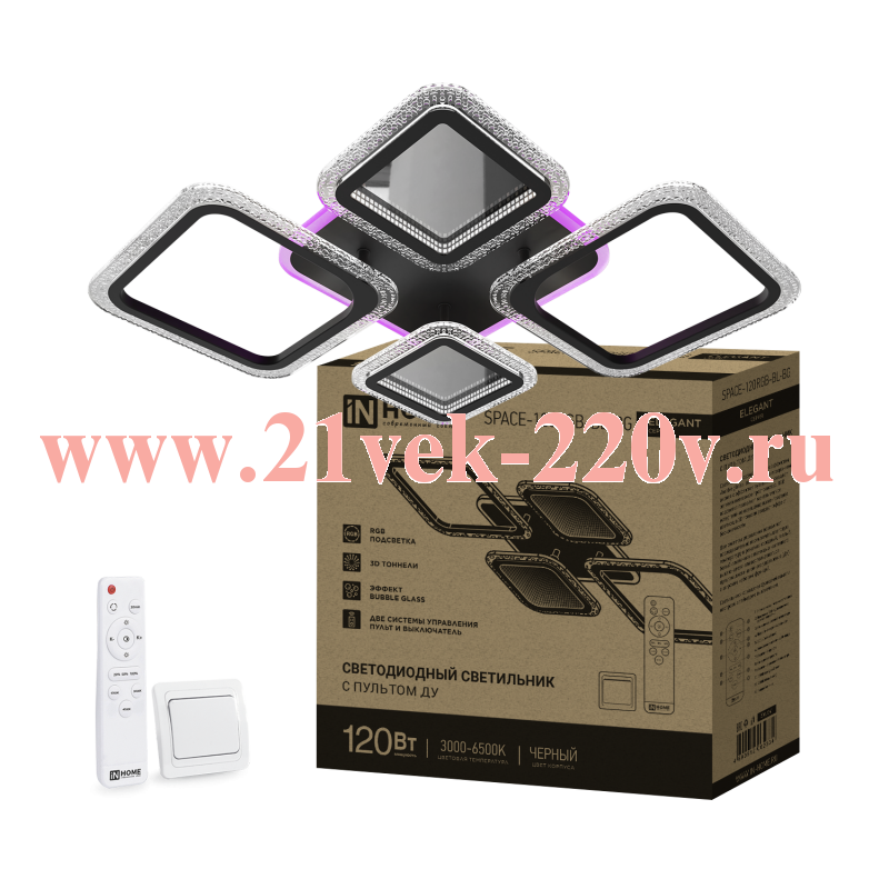 Светильники серии ELEGANT c эффектом "bubble glass", выполненные в прозрачном акриле с эффектом пузырьков, создают легкое и невесомое пространство, RGB подсветка позволяет менять мягкое естественное освещение на контрастное цветное, а 3D тоннели создают эффект бесконечности. Две системы управления позволяют последовательно переключать цветовую температуру в режимах холодный, теплый, белый или ночник с помощью настенного выключателя или воспользоваться пультом дистанционного управления (ДУ) с широким набором функций. Светильники оснащены функцией памяти настроек и таймером выключения.