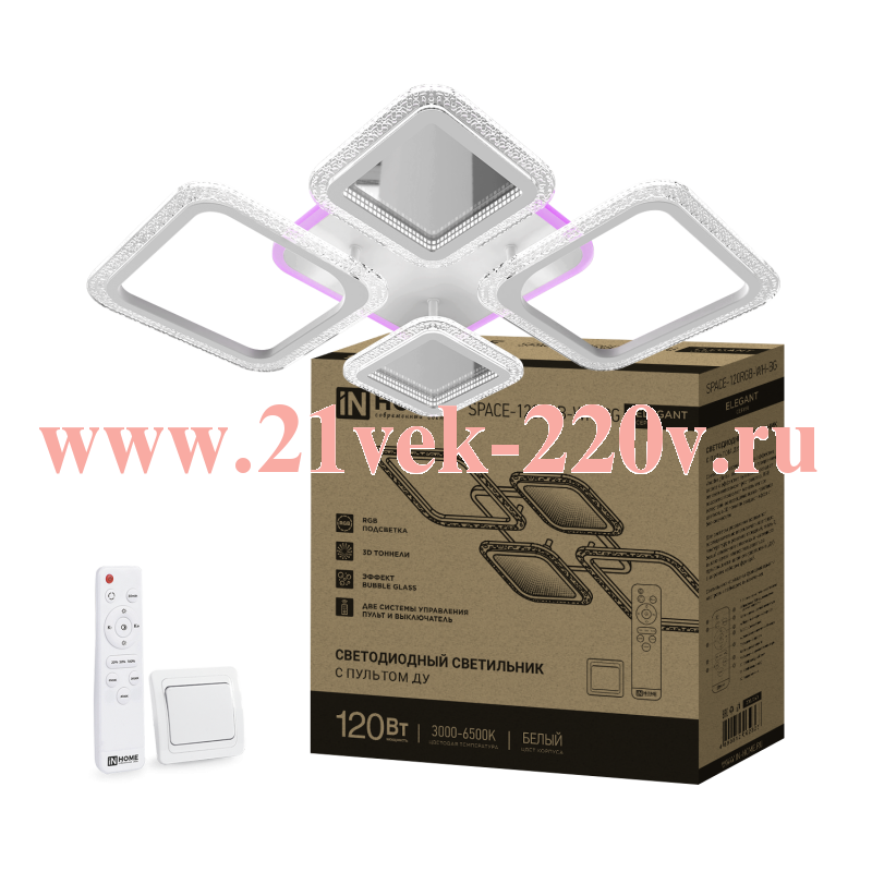 Светильники серии ELEGANT c эффектом "bubble glass", выполненные в прозрачном акриле с эффектом пузырьков, создают легкое и невесомое пространство, RGB подсветка позволяет менять мягкое естественное освещение на контрастное цветное, а 3D тоннели создают эффект бесконечности. Две системы управления позволяют последовательно переключать цветовую температуру в режимах холодный, теплый, белый или ночник с помощью настенного выключателя или воспользоваться пультом дистанционного управления (ДУ) с широким набором функций. Светильники оснащены функцией памяти настроек и таймером выключения.