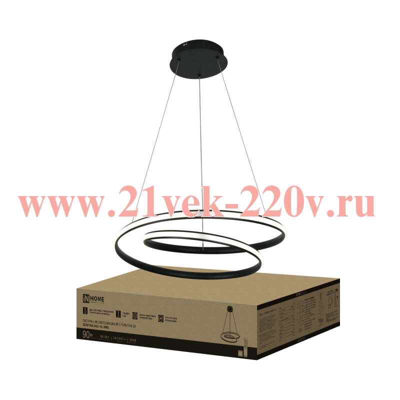 Светильник светодиодный ESTETIKA DALI-HL-90BL 90Вт 3000-6500К 230В 500х500х120мм 1.2м трос ДУ черн.
