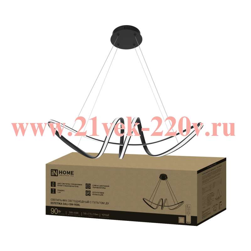 Светильник светодиодный ESTETIKA DALI-SM-90BL 90Вт 3000-6500К 230В 760х210х210мм 1.2м трос ДУ черн.