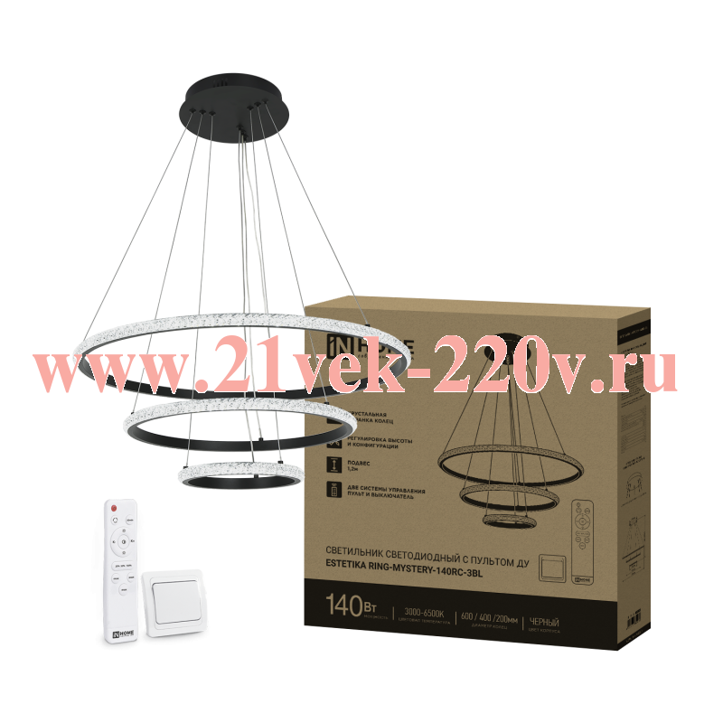 Светильник светодиодный ESTETIKA RING-MYSTERY-140RC-3BL 140Вт 3000-6500К 600/400/200 1.2м пульт ДУ