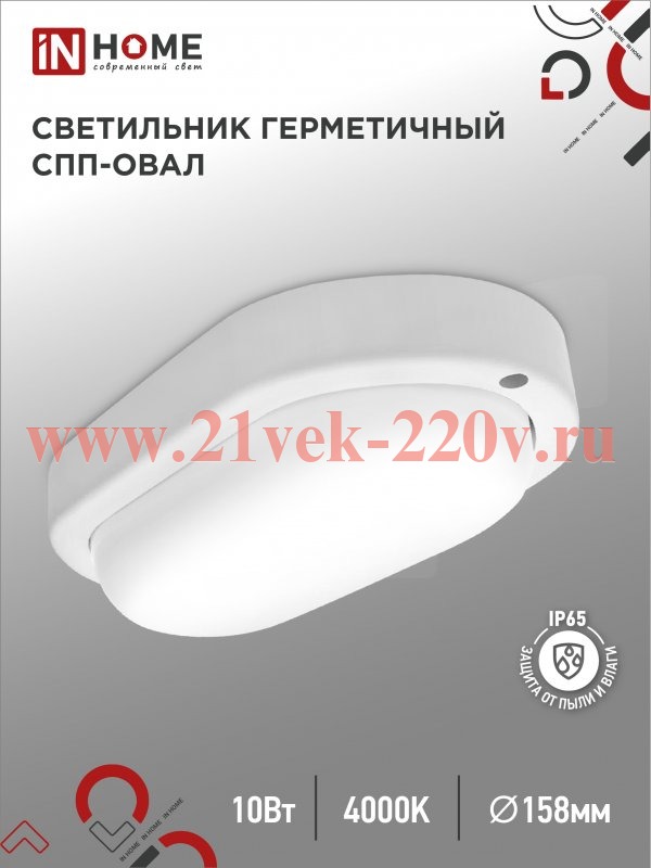 Светильник светодиодный герметичный СПП 1040-ОВАЛ 10Вт 4000К 900лм IP65 160х88мм IN HOME