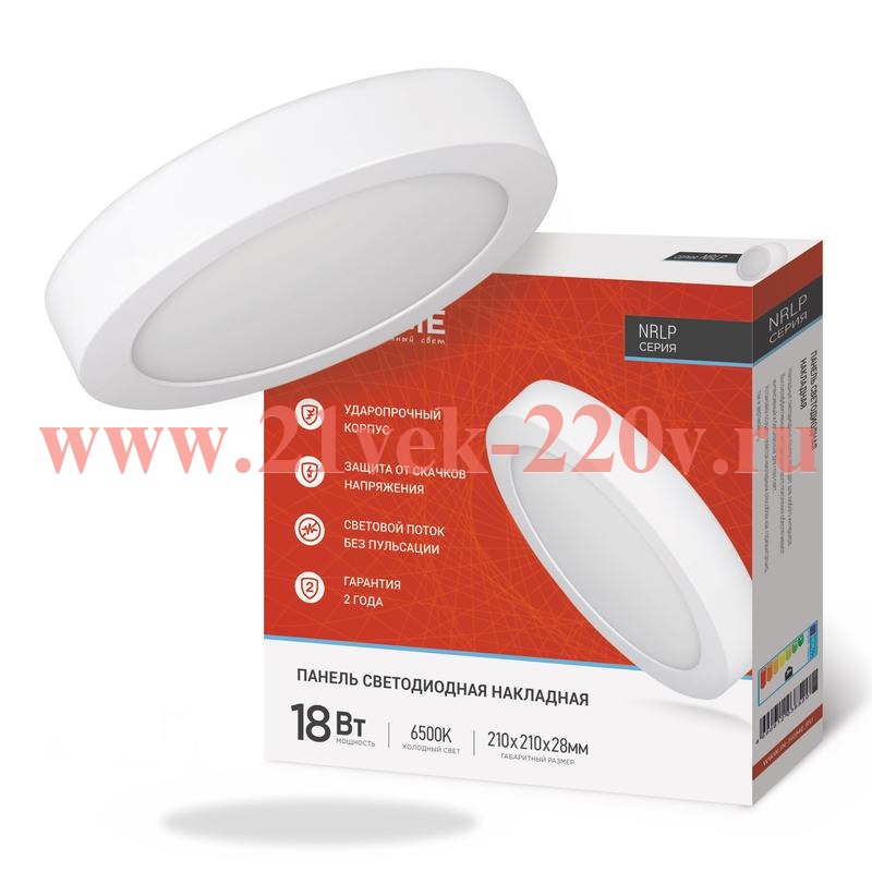 Панель светодиодная накладная круглая NRLP 18Вт 230В 6500К 1260Лм 210мм белая IP40 IN HOME