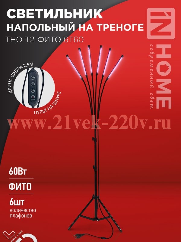 Светильник светодиодный напольный на треноге ТНО-Т2-ФИТО 6Т60 60Вт 6 плафонов пульт на шнуре черный