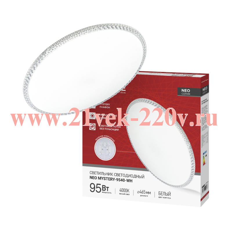 Светильники серии NEO MYSTERY с мерцающей хрустальной огранкой плафона помогут решить задачу по созданию оптимального освещения благодаря тонкому корпусу и лаконичной форме. Линзованные светодиоды и матовый плафон обеспечат равномерное освещение, а новый тип съемного крепления позволит быстро и удобно установить или снять светильник. Отсутствие вредных пульсаций светового потока обеспечит комфортный и безопасный свет для глаз.