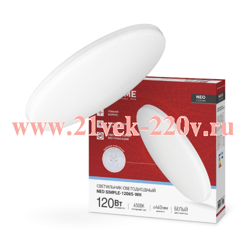 Светильник светодиодный NEO SIMPLE-12065-WH 120Вт 6500К 9600лм 230В 460х70мм бел. IN HOME