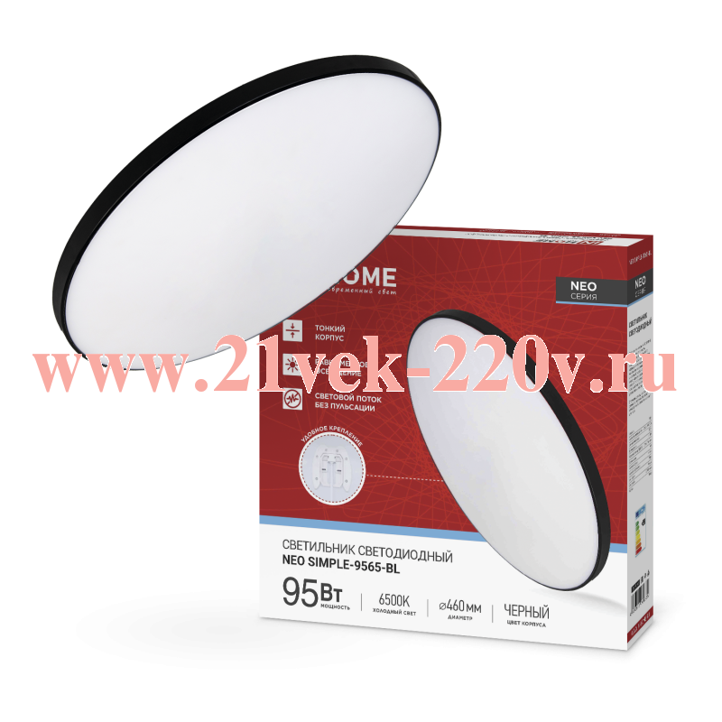 Светильник светодиодный NEO SIMPLE-9565-BL 95Вт 6500К 7600лм 230В 460х67мм черн. IN HOME