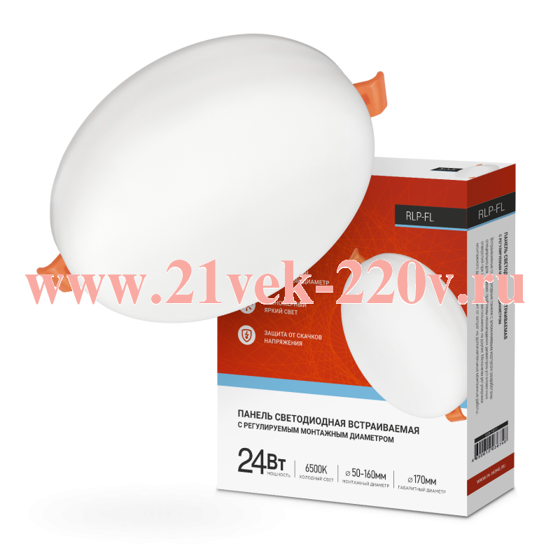 Встраиваемые светодиодные панели RLP-FL с регулируемым монтажным диаметром позволяют решить проблему несовпадения диаметров установочных отверстий при замене светильников. Светильник отличается равномерным ярким светом, а высокий индекс цветопередачи делает световой поток максимально приближенным к естественному освещению.