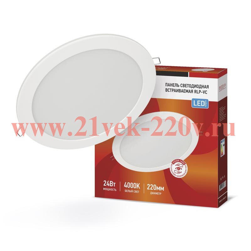 Светильник светодиодный RLP-VC 24Вт 4000К IP40 1920лм 230В 220мм кругл. встраив. панель бел. IN HOME