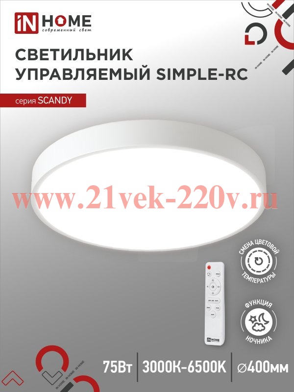 Светильники серии SCANDY SIMPLE имеют возможности плавного изменения цветовой температуры и интенсивности освещения. Две системы управления позволяют последовательно переключать цветовую температуру в режимах холодный, теплый, белый или ночник с помощью настенного выключателя или воспользоваться пультом дистанционного управления (ДУ) с широким набором функций. Светильники оснащены функцией памяти настроек и таймером выключения.